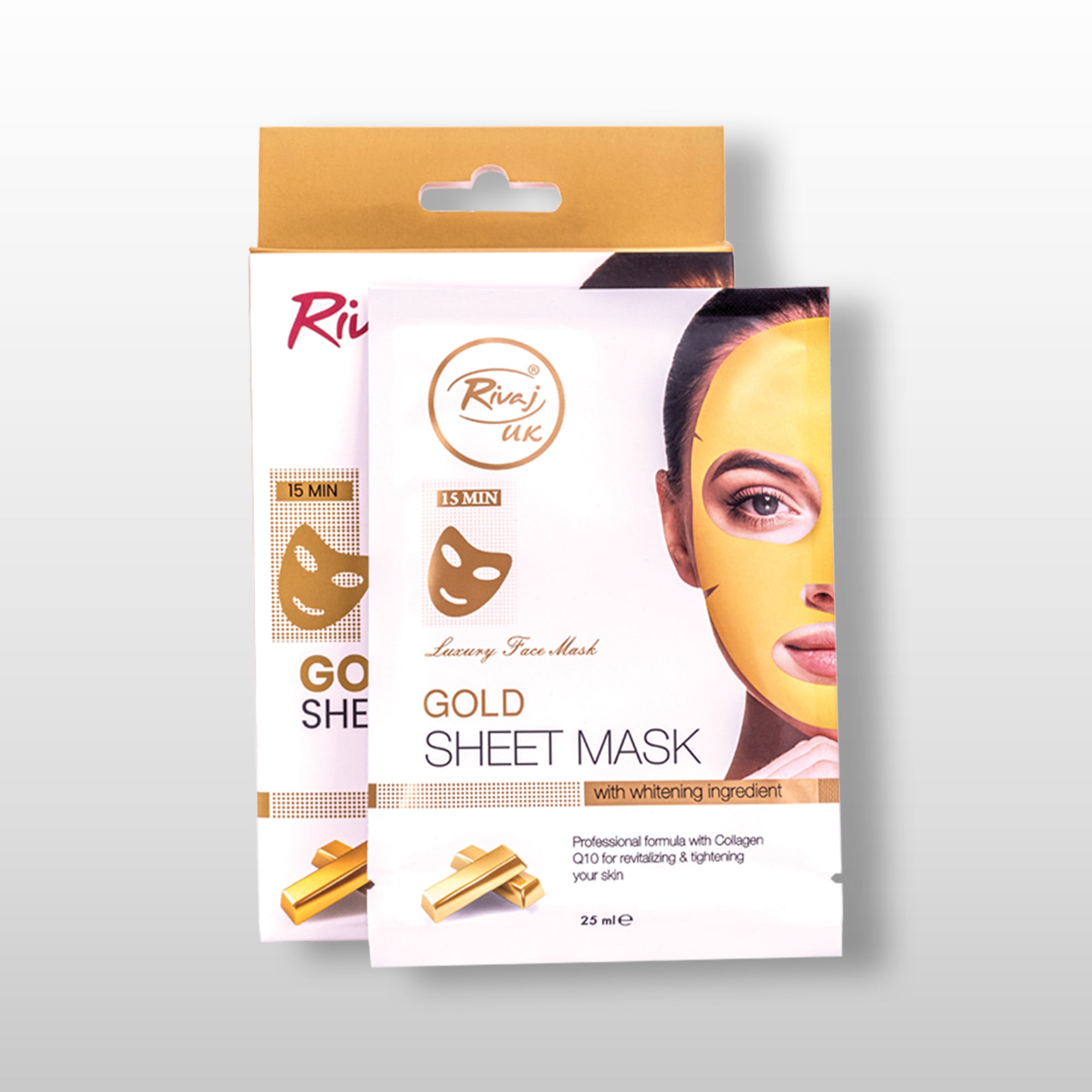 Gold Sheet Mask nourishes deep within the pores to dissolve and dislodge the build-up of impurities. Rivaj Gold Sheet Mask is made with a soothing gel texture to hydrate and revitalize dull, tired skin. Gold and collagen work together to reduce fine lines and wrinkles while leaving the skin soft and smooth. The gold-infused formula gives you younger-looking, glowing skin.